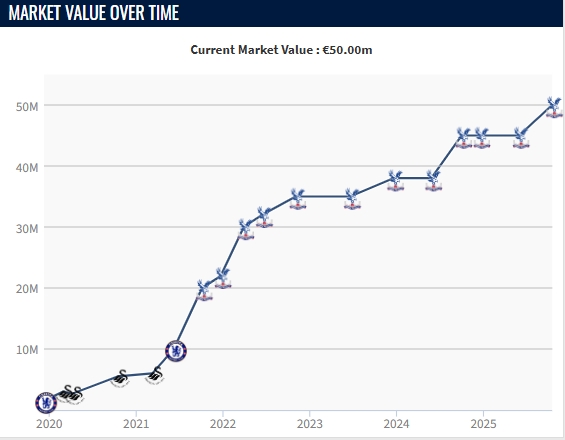 10月17日讯 今日德转更新英超球员身价,25岁水晶宫中卫格伊身价涨至5000万欧,创生涯新高。