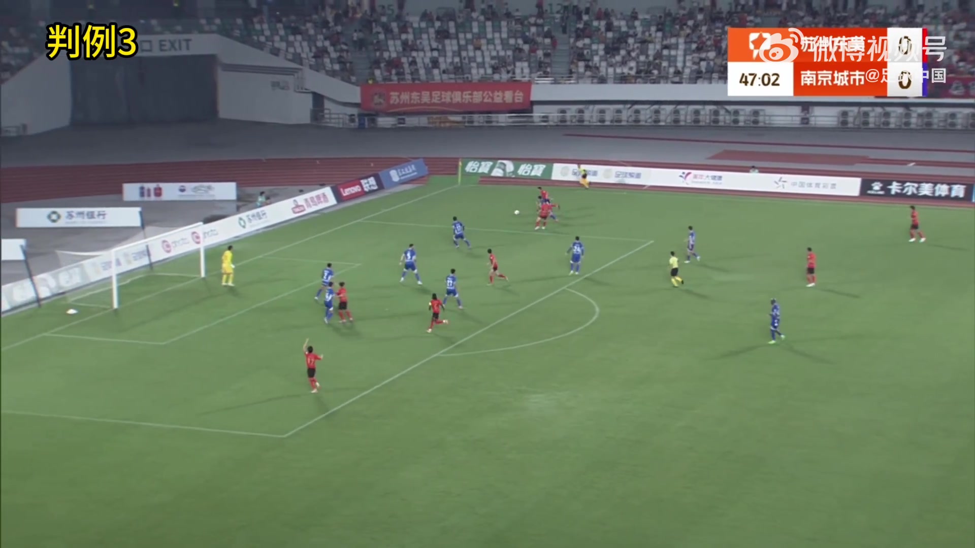 判例三:中甲职业联赛 第24轮,苏州东吴vs南京城市。赛事 第48分钟,苏州东吴6号队员顶球射球 ,南京城市门将将球扑出,助理裁判 员示意球的整体已经越过古代足球 门 线,裁判 员判苏州东吴队得分 积分 。