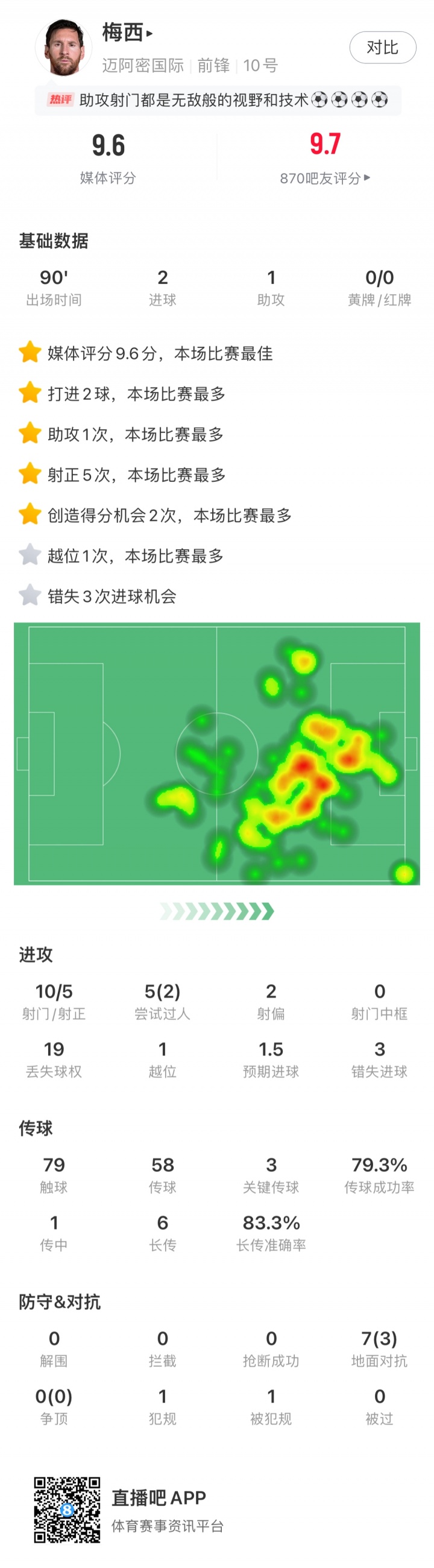 10月12日讯 梅西2球1助帮助迈阿密4-0大胜亚特兰大联,梅西本场10射5正,但3次错失得分 机会,免费欧洲杯直播媒体评分9.6。