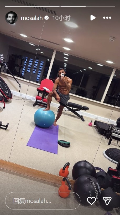 11月3日讯 在个人社媒,萨拉赫晒出健身运动练习 房练习 照。