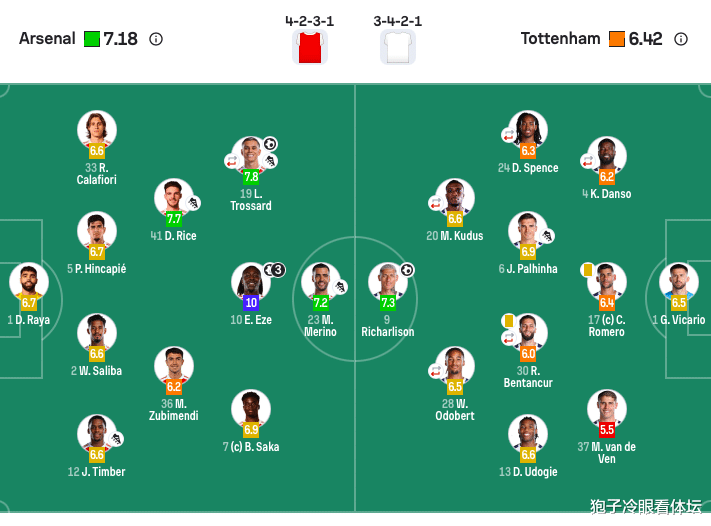 热刺杆位:1-维卡里奥、17-罗梅罗、4-丹索(46’7-西蒙斯)、37-范德芬、6-帕利尼亚、30-本坦库尔(66’29-萨尔)、13-乌多吉、24-斯彭斯(78’23-佩德罗·波罗)、20-库杜斯(78’22-布伦南·约翰逊)、28-奥多贝尔(66’39-穆阿尼)、9-里沙利松。